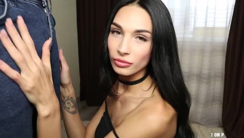 Fia is on her knees then she pulls out his cock. Fia gives him a blowjob. She sucks and deepthorats his cock. Fia plesures his cock and he users her like a toy. He face fucks her. Fia jerks him off then he gives her a facial.