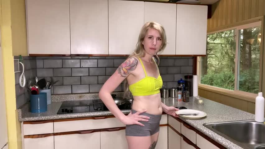 After you’ve dressed she’s in the kitchen getting your dinner plate ready. She’s still in her workout clothes, so when she bends over to get something she dropped, you can see her cameltoe. She turns around to see you’re not right behind her, pushing your hard cock into her ass. She tells you to stop but doesn’t seem to mind. The phone rings, and it’s your daddy. He’s going to be working late tonight. You notice she’s distracted talking to your daddy, so you grab her and push her head down on your cock. She gags. On the phone, your daddy asks what that sound was, she lies (of course) saying it must be static. Your mommy gets off the call and suggest you have supper in the living room tonight.